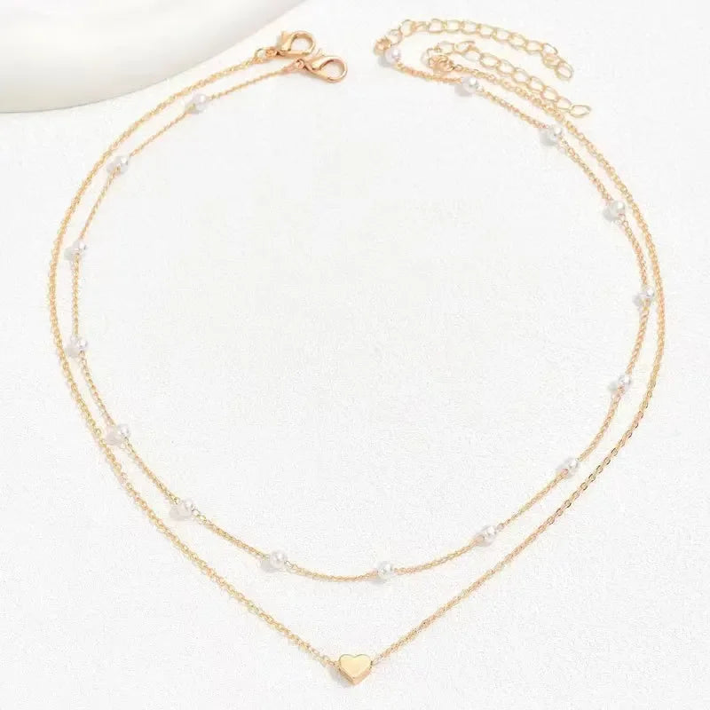 Elevate your style with the Amelia double-layer pearl choker necklace. Featuring a delicate heart pendant and timeless pearls, this piece adds a touch of sophistication to any outfit.