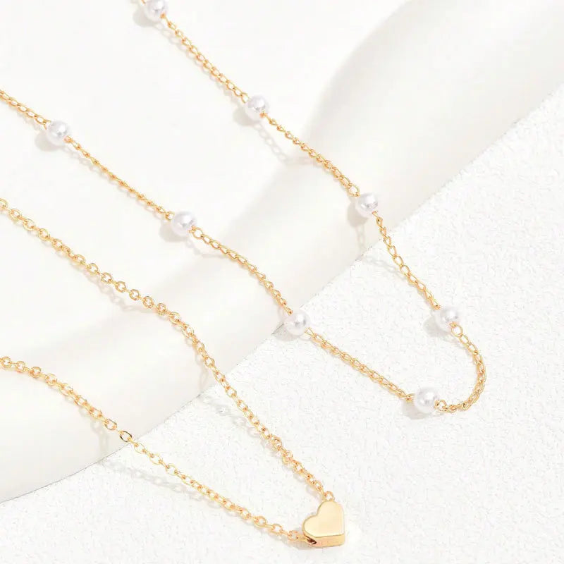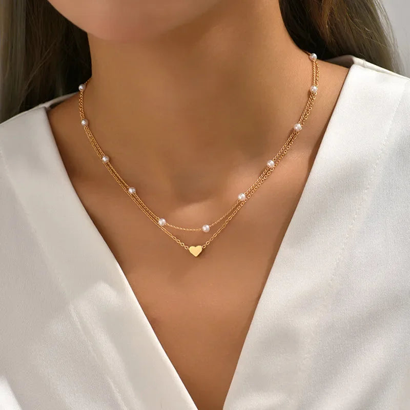 - Double-Layer Design: Combines classic pearls with a dainty heart pendant for a chic, layered look.