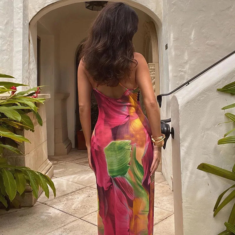 Tie-Dye Backless Chiffon Dress