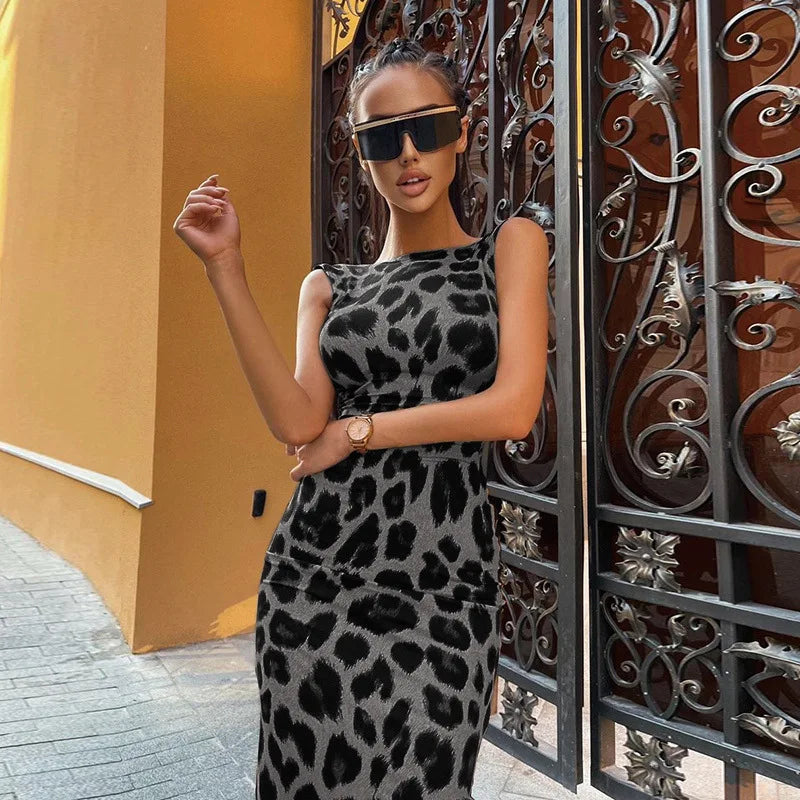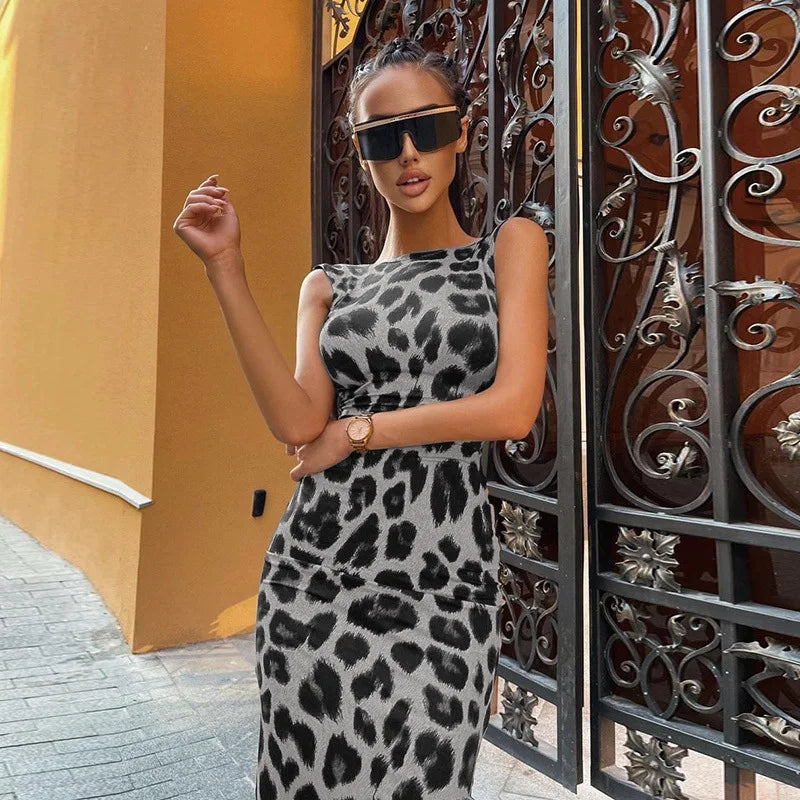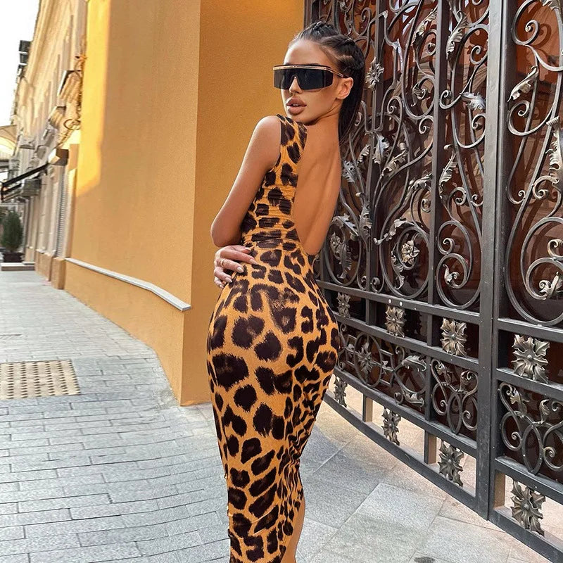 Make a bold statement with the Leopard Open Back Dress. Designed to blend elegance and confidence, this dress features a striking open-back detail and a sleek, flattering fit that’s perfect for evenings out or special occasions.